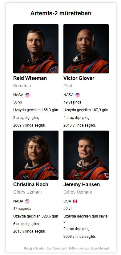 NASA'nın Artemis-2 görevinin dört astronotu, 3'ü Amerikalı olmak üzere Reid Wiseman, Victor Glover, Christina Koch ve Kanada'dan Ay görevinde giden ilk astronot Jeremy Hansen (aslen Londralı), Ay çevresinde on günlük bir gidiş-dönüş yolculuğu için çarşambayı perşembeye bağlayan gece yola çıktılar.