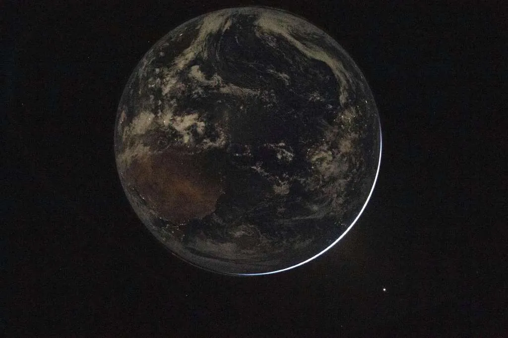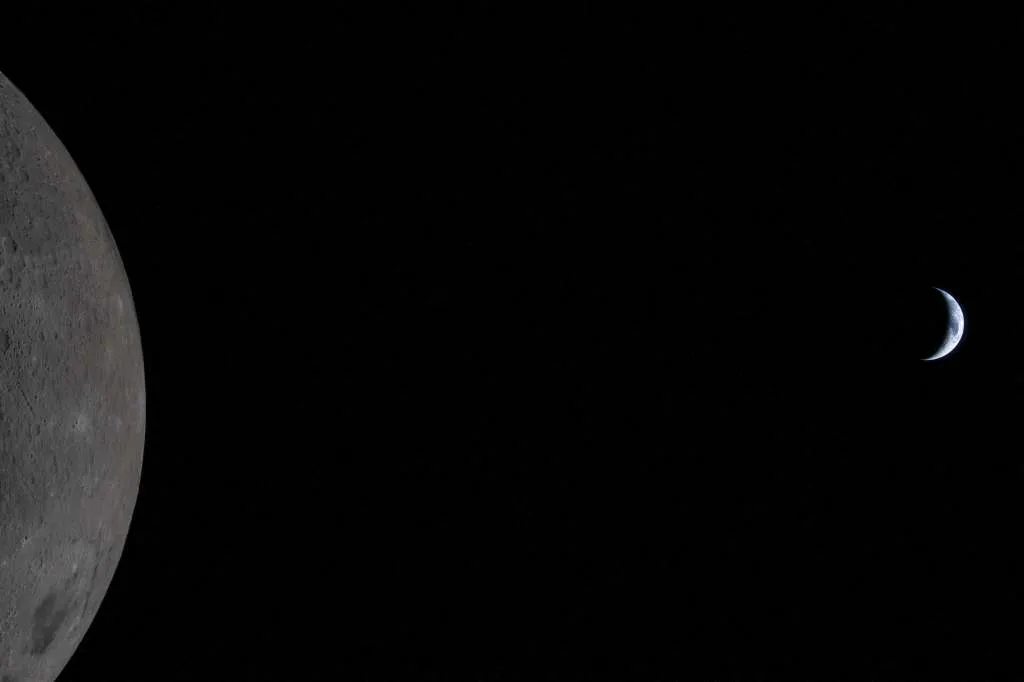 Sağdaki ince hilal, Ay'dan görünen Dünya...
