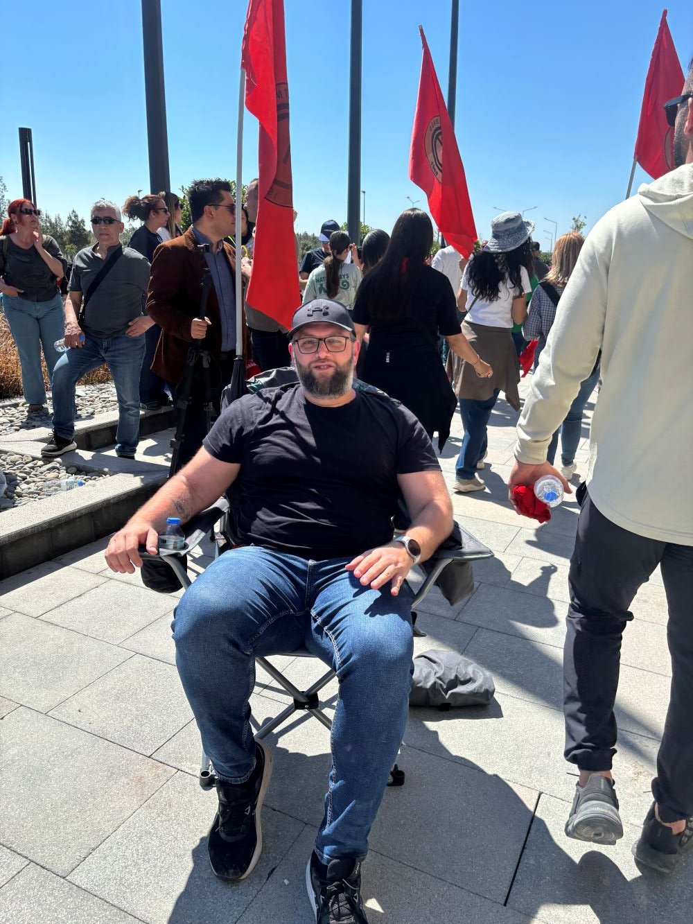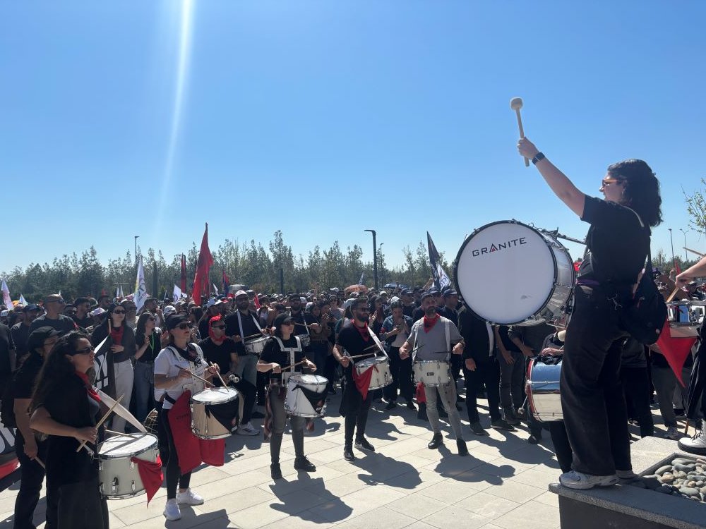 Bugünkü eyleme katılan çalışanların yüzlerinde yalnızca öfke değil, aynı zamanda diri ve bulaşıcı bir coşku vardı. Meclis binasının önünde ‘hükümet istifa’ sloganı yükselirken, kalabalığın içinde neşe yayan bir enerji hüküm sürdü. Özellikle hükümete her dersten sıfır karne notu veren KTÖS üyesi ve KTÖS bando takımından öğretmen Emel İpçiler’in standup tadındaki çıkışı, eylemin en çok ilgi gören anlarından biri oldu.