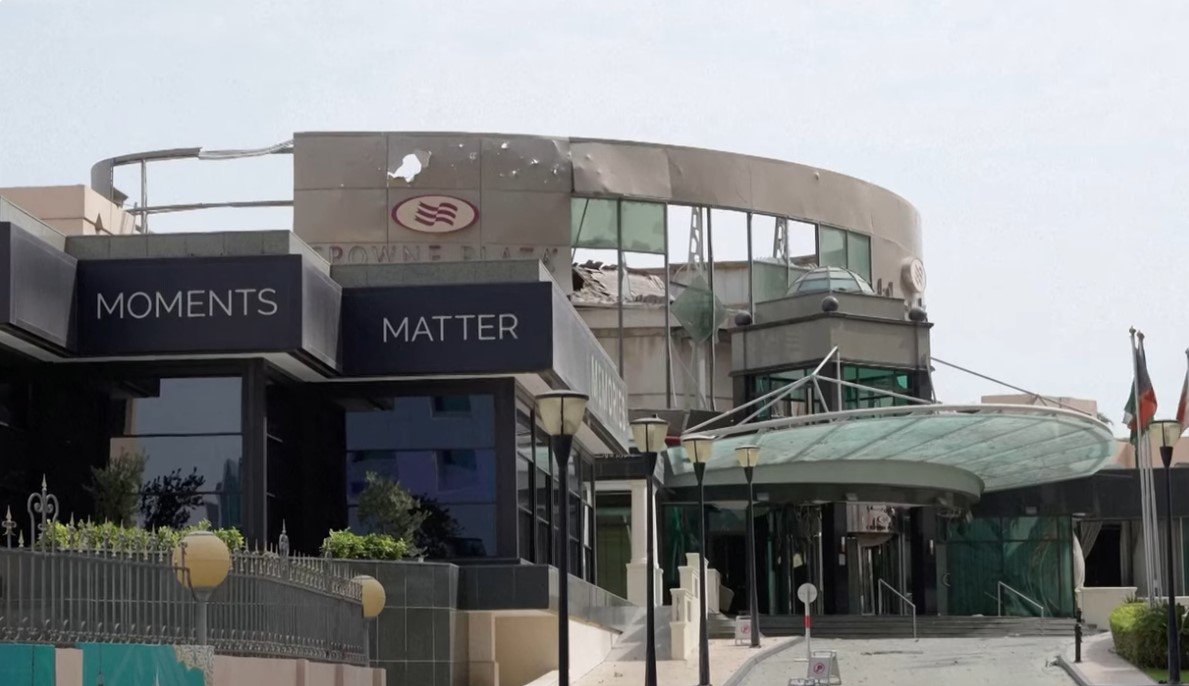 ABD-İsrail’in İran’a yönelik saldırılarının ardından İran’ın gerçekleştirdiği füze ve insansız hava aracı saldırıları sırasında Bahreyn, Manama’daki Crowne Plaza Oteli vuruldu.