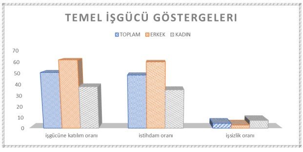 Erkeklerde istihdam oranı yüzde 60, işgücüne katılım oranı yüzde 61,8; kadınlarda ise istihdam oranı yüzde 35,3, işgücüne katılım oranı yüzde 38,1 olarak belirlendi.