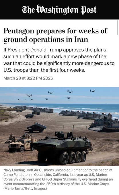 Washington Post gazetesi, tam ölçekli bir işgal planlanmasa bile Pentagon'un İran'da kara operasyonlarına hazırlandığını bildirdi. Gazete, ismini vermek istemeyen ABD'li yetkililere atıfta bulundu.