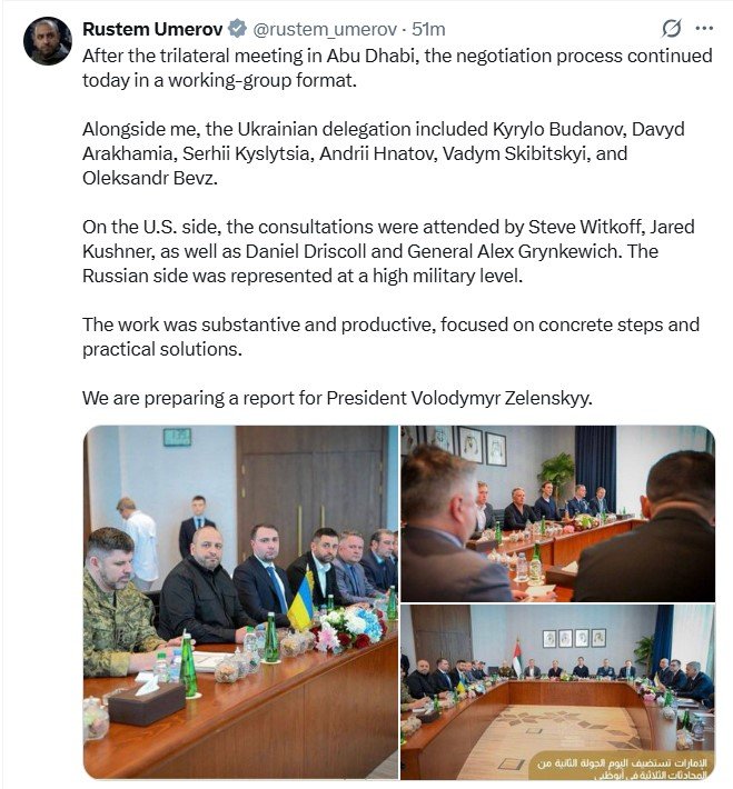 "Abu Dabi’de yapılan üçlü toplantının ardından, müzakere süreci bugün çalışma grubu formatında devam etti.
